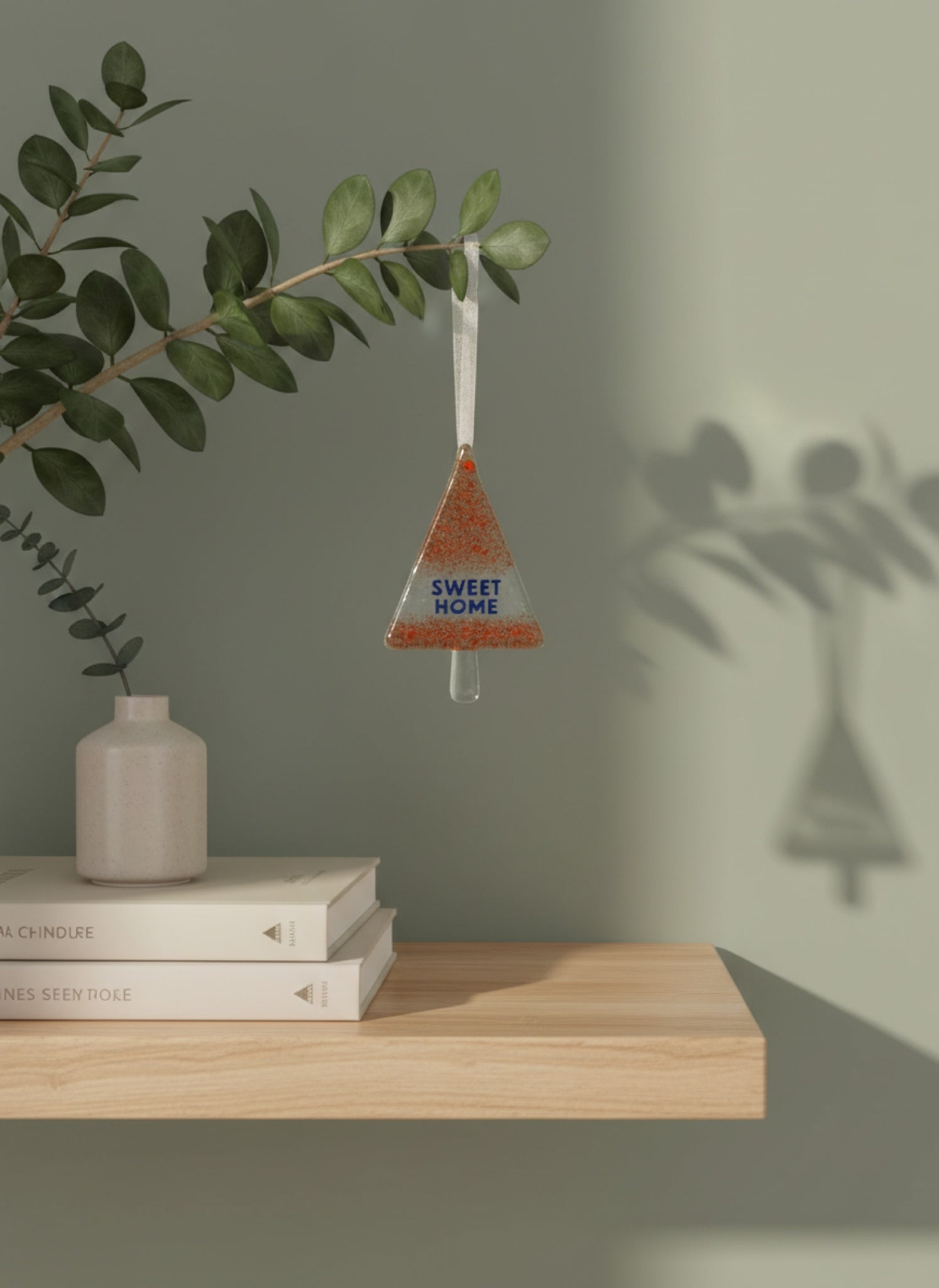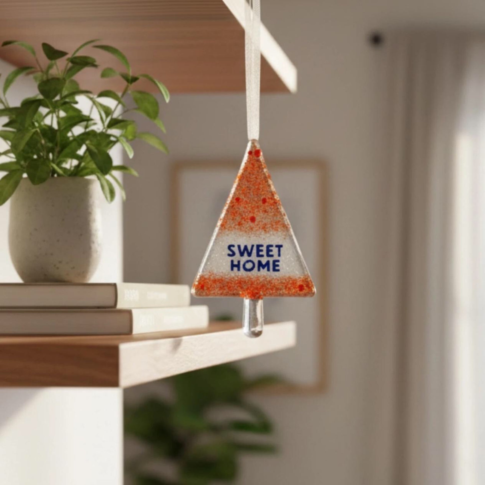 „ტკბილი სახლი“ პატარა, დნობადი მინის სახლის აქცენტია მარტივი გზავნილით, რომელიც ჩახუტების შეგრძნებას მოგაგონებთ. თბილი მანდარინის კონფეტი დღისით ბრწყინავს, ხოლო წარწერა „ტკბილი სახლი“ მას იდეალურს ხდის ფანჯრისთვის, შესასვლელისთვის ან საყვარელი თაროსთვის - კომფორტის, სითბოსა და კუთვნილების პაწაწინა შეხსენება.