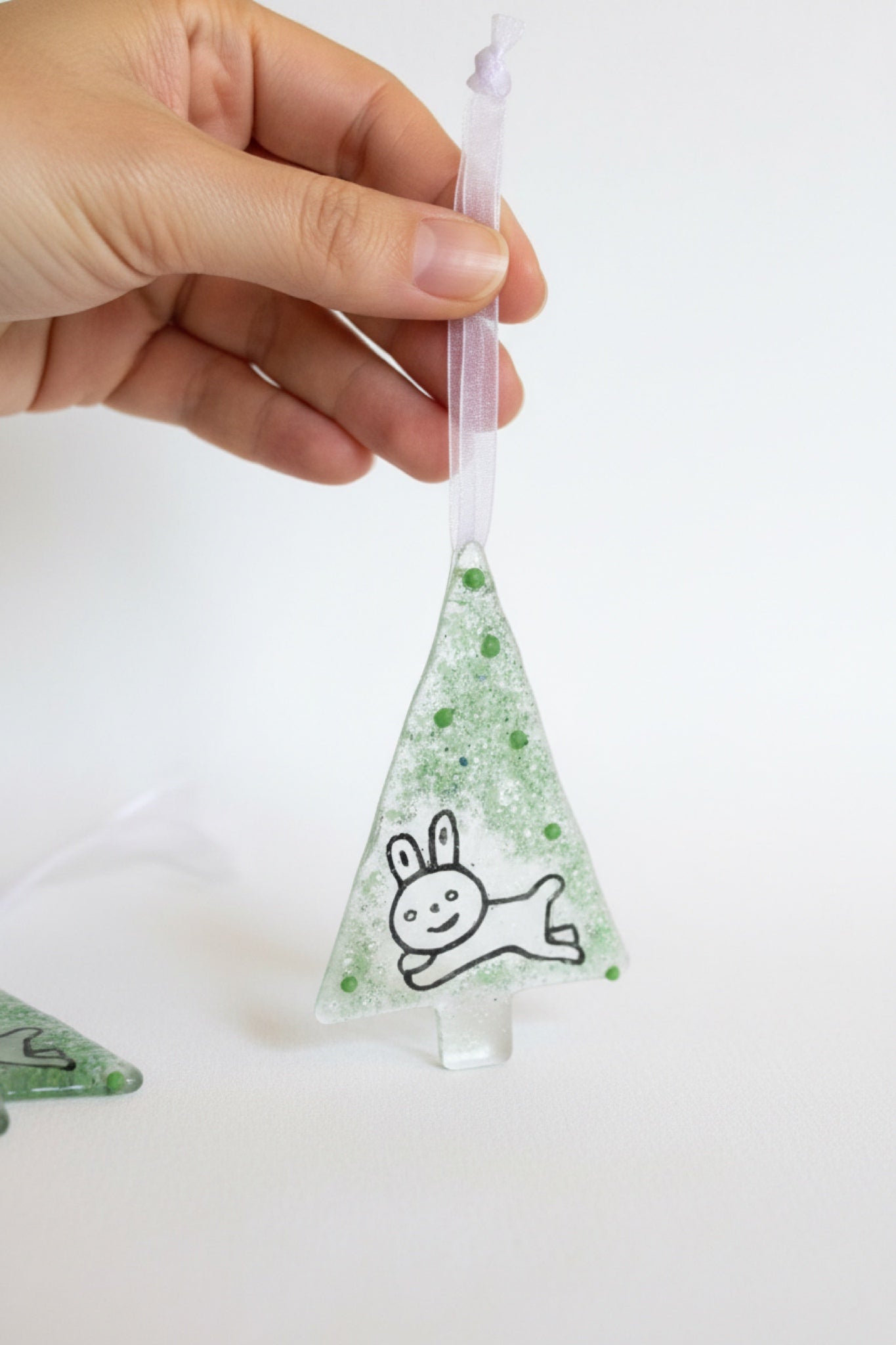 Bunny is a small, cozy light-catcher for your home. Handcrafted from fused glass, it softly brightens a window, shelf, or favorite corner. The playful confetti dots and sweet bunny drawing make every piece feel like a little everyday cheer.