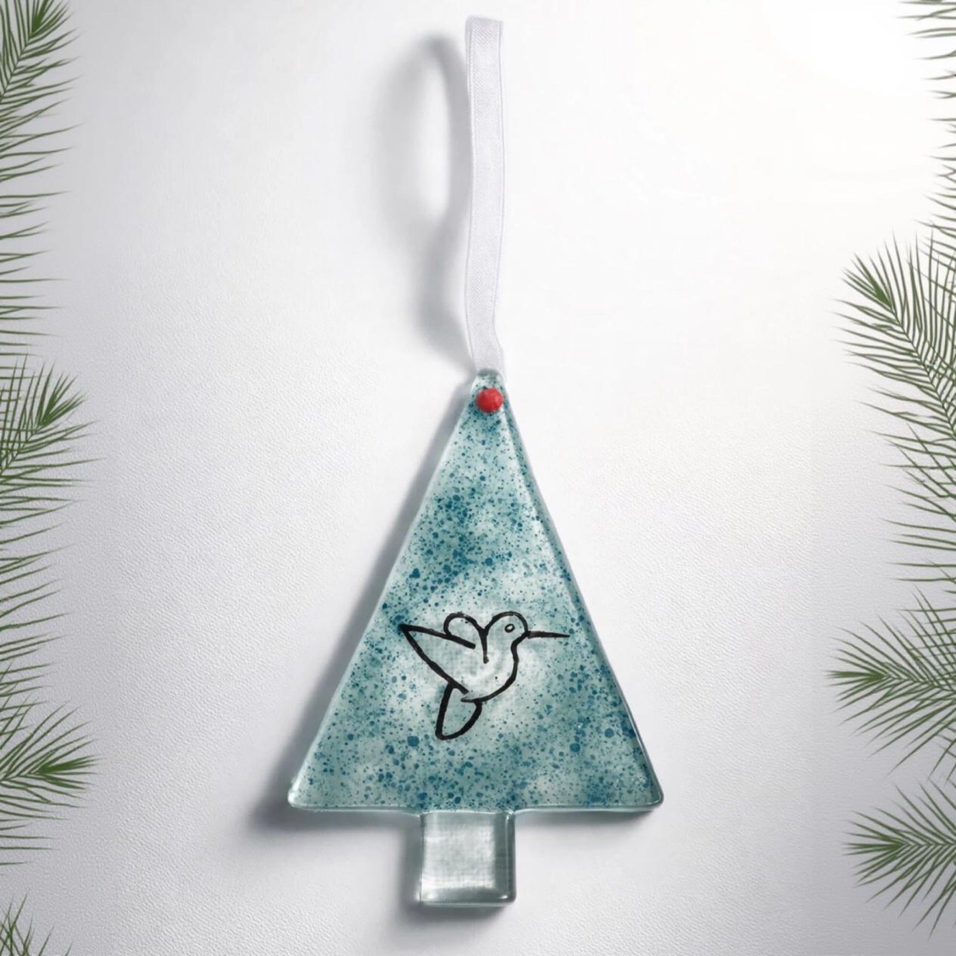 A small fused-glass home talisman with a hummingbird motif — a symbol of lightness, energy, and joy.