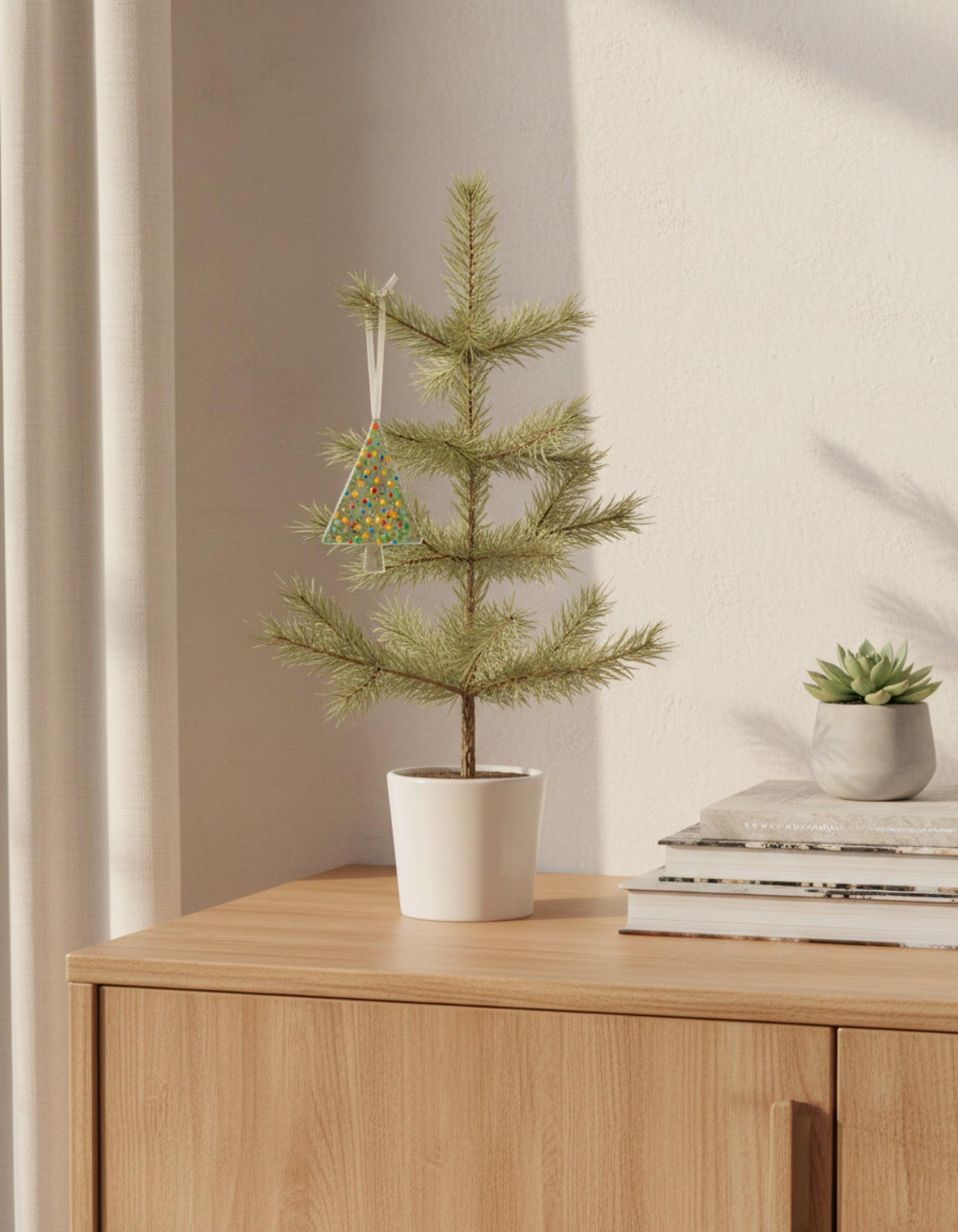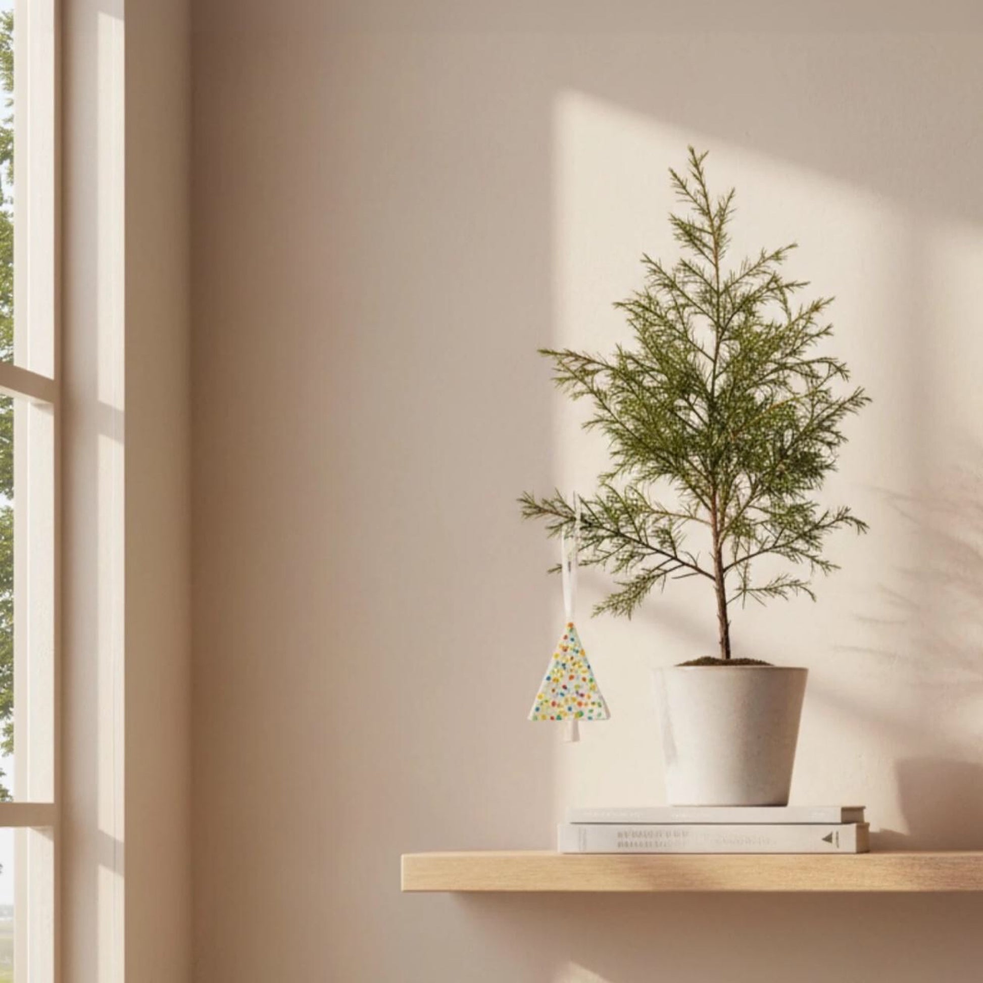 A bright fused-glass tree ornament with playful confetti dots. Made to catch the light and add a cheerful accent to your holiday decor. Each piece is handmade in Batumi and slightly unique.