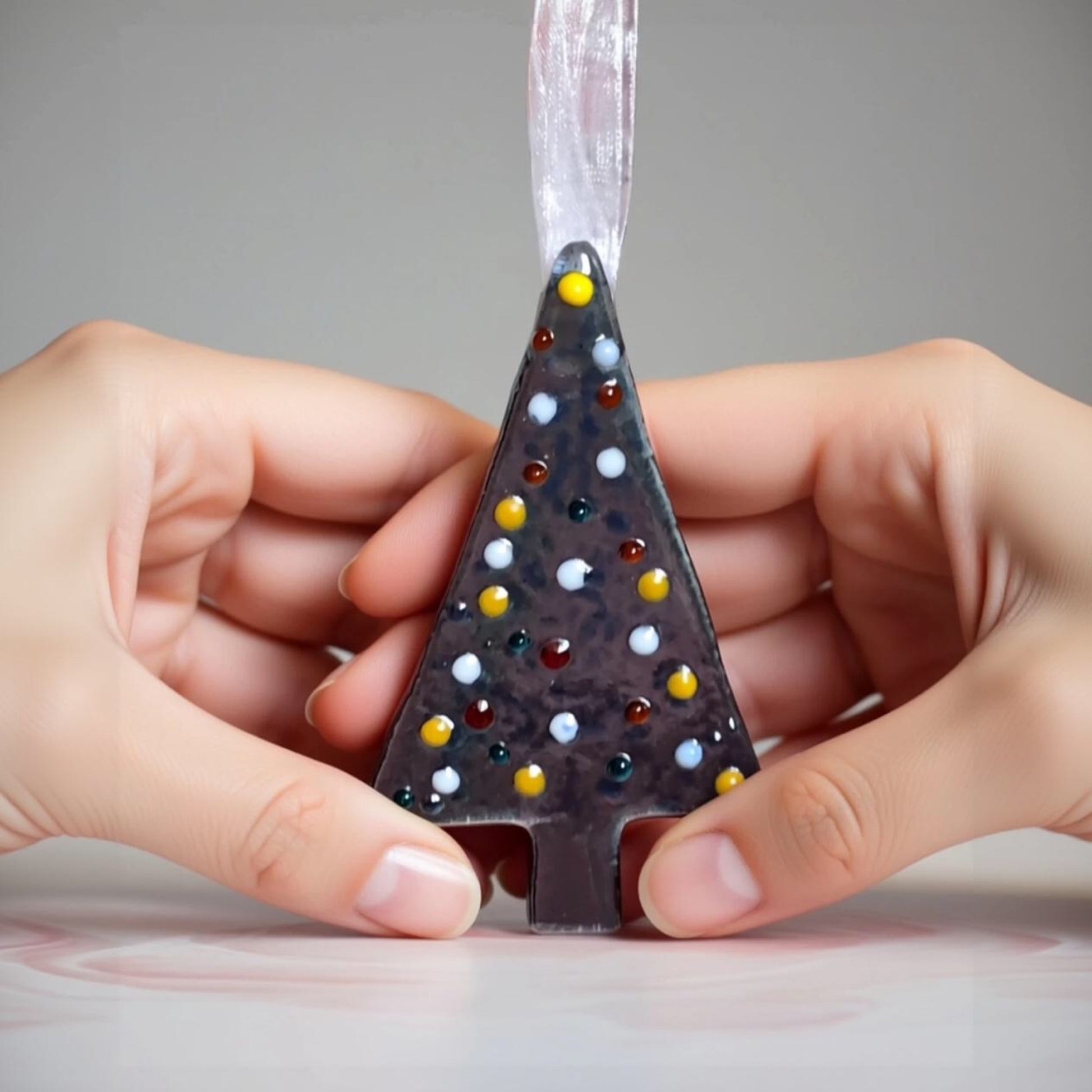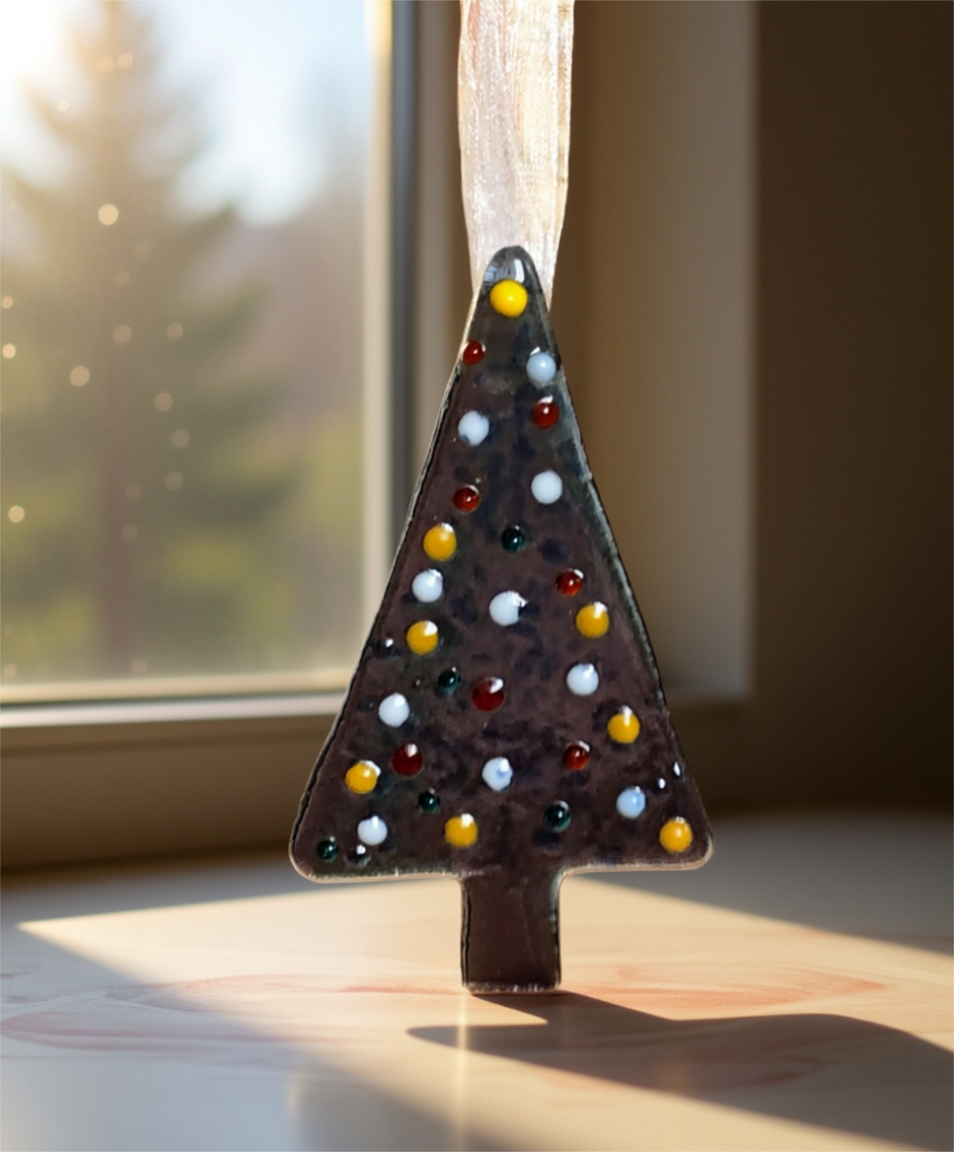 A deep “midnight” tree with colorful confetti dots — cozy, minimal and gift-ready. Each piece is made in small batches, so tiny variations are part of the charm.