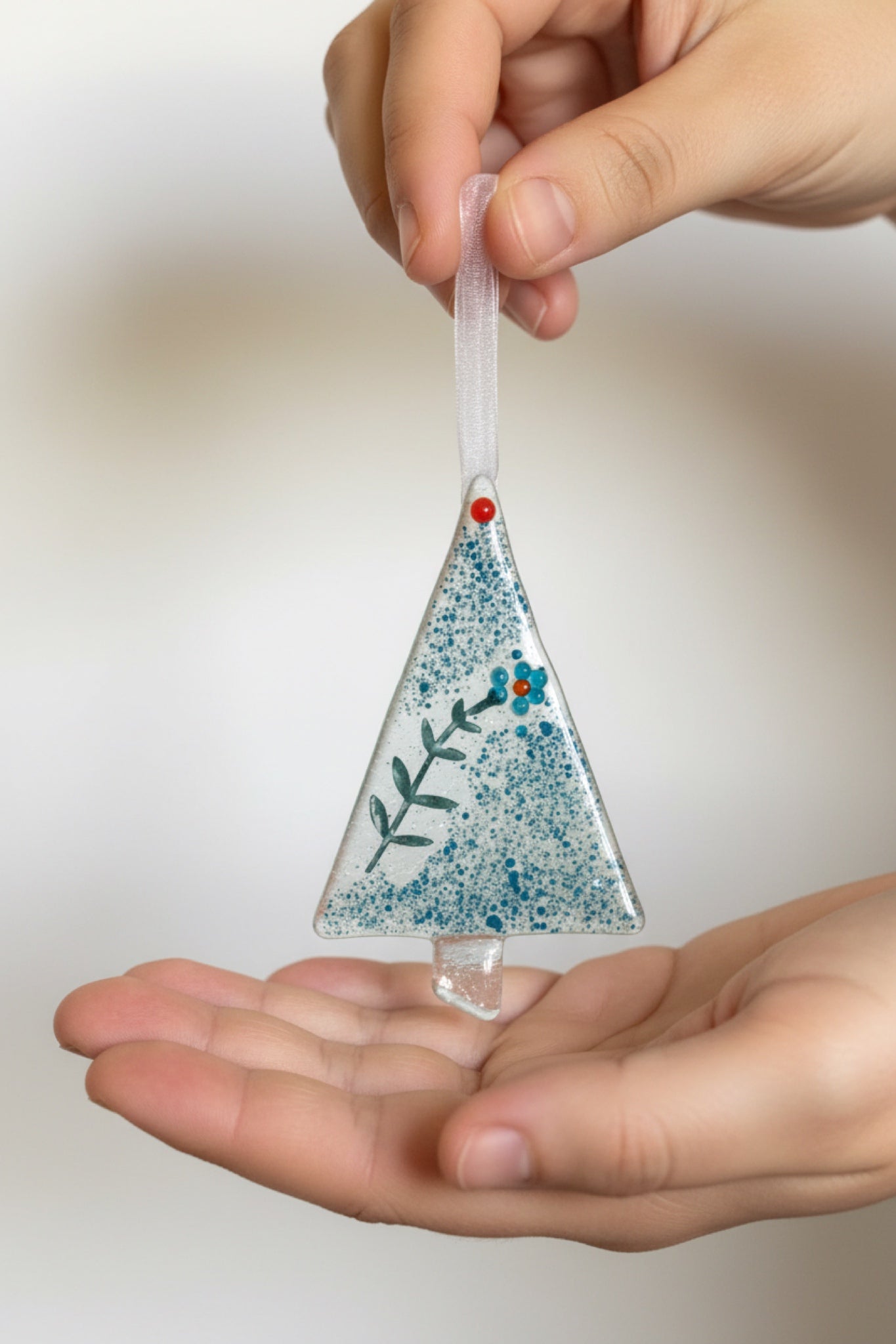 Blue Blossom is a gentle, calming accent for your home. Handcrafted from fused glass, it catches daylight with a cool blue sparkle and a tiny painted blue flower — a small reminder of nature and slow, cozy moments. Perfect for a window, shelf, or any corner you want to feel lighter.